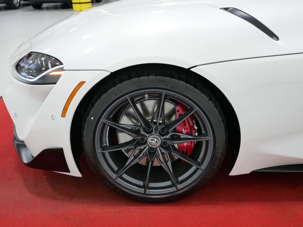 Leather-trimmed sport seats8.8-in. touchscreen with Supra Command featuring touchpad control with navigation, AM/FM, Digital Audio, SiriusXM®, wireless Apple CarPlay® compatible, voice recognition and USB /Bluetooth® connectivity. See toyota.com/connected-services/grsupra-support for details.Toyota Supra Connect featuring Automatic Emergency Calling, Remote-Control Lock/Ventilation, Real-Time Traffic Information, Map Updates, and Toyota Supra Online (services available online; app available for Android and iOS devices) -